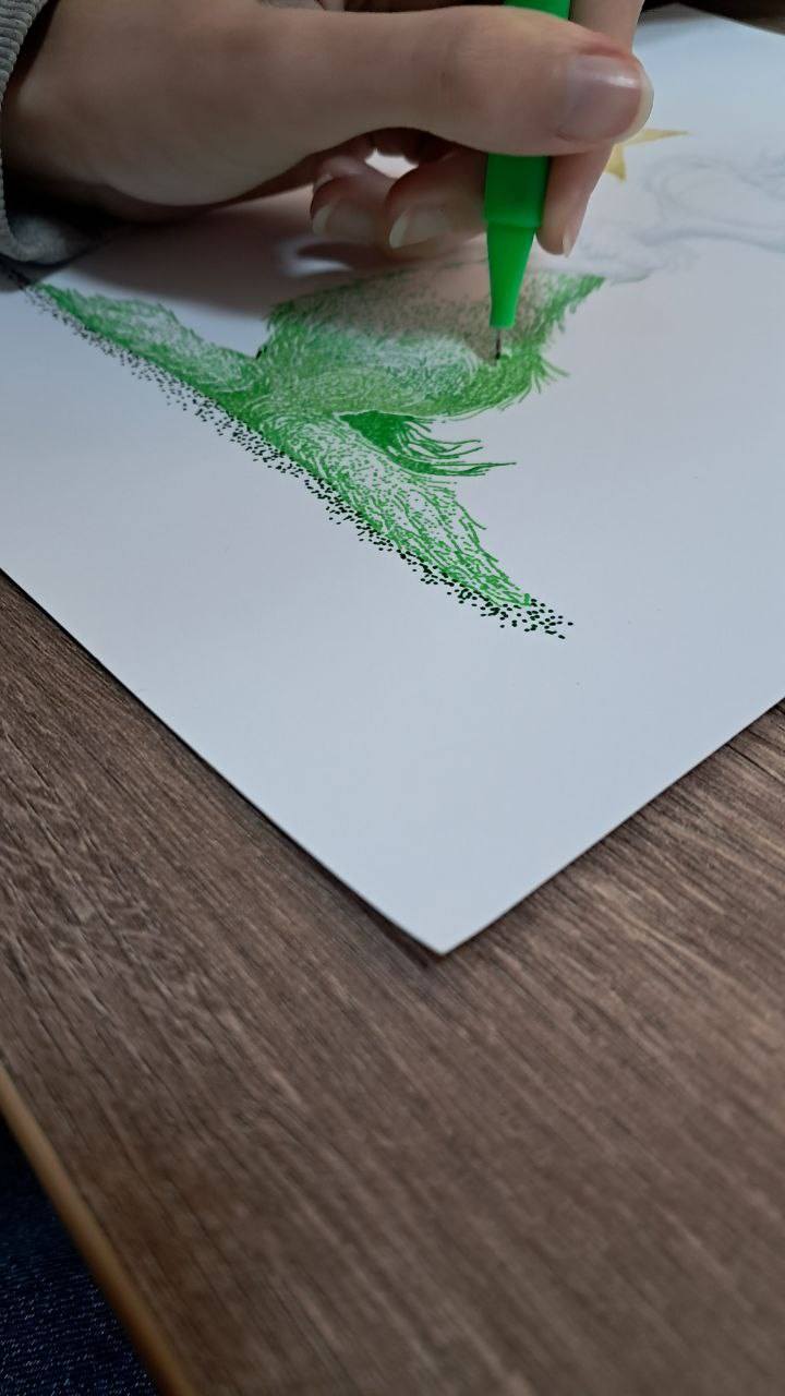 В неділю у відділі читального залу відбулося чергове заняття студії малюнку “Три крапки” з мисткинею Оленою Сєргєєвою.