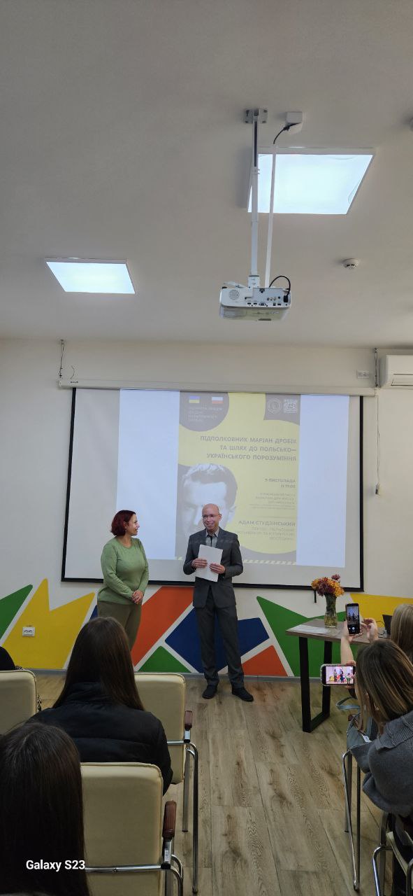 Учора, 9 листопада, у Рівненській обласній бібліотеці для молоді відбулася відкрита лекція відомого польського письменника та історика пана Адама Студзінського, присвячена постаті полковника Мар’яна Дробіка – видатного військового, учасника обох світових воєн, діяча польського підпілля, який залишив помітний слід в історії ХХ століття.