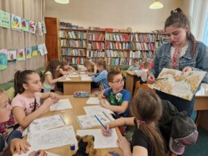 Сьогодні малювали комах. Учасників об’єднала тема «Шалені бджілки з чарівного світу казки». Щоб зарядитися натхненням, спершу читали тематичні вірші «Бджілка» Катерини Перелісної й «Бджілка-трудівниця» Зінаїди Грієвої. Також мандрували сторінками змістовних книг «Комахи. 50 найвідоміших видів» і «Пізнаю світ. Бджоли» Альґара Алехандро.