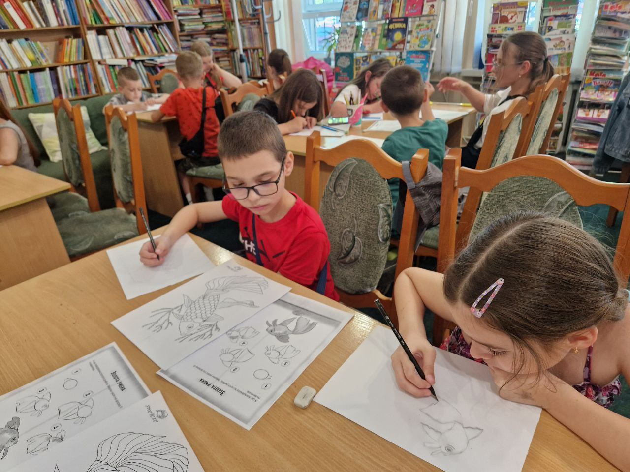 У Рівненській обласній бібліотеці для молоді провели заняття у рамках арттерапевтичного майданчика «Оселя креативу». Учні натхненно малювали рибки.