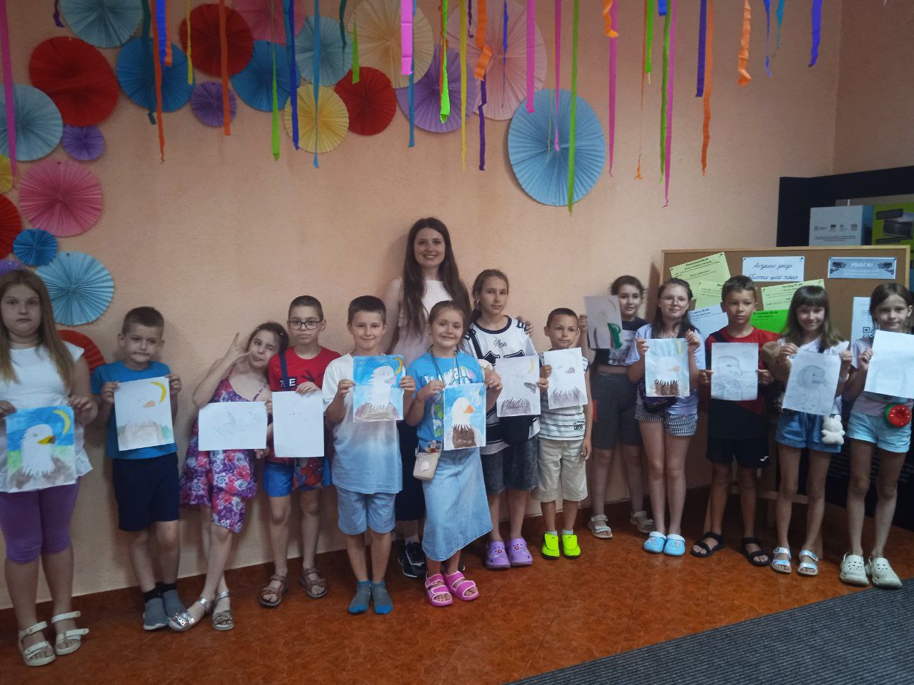 Учасників арттерапевтичного майданчика об’єднала тема «Орел як символ сили, сміливості та свободи». Спершу бібліотекар декламувала вірші «Орел» Олени Пчілки та «Орел» Богдана Брездена, щоб учні зарядилися натхненням. Після цього діти активно проявляли творчі здібності.
