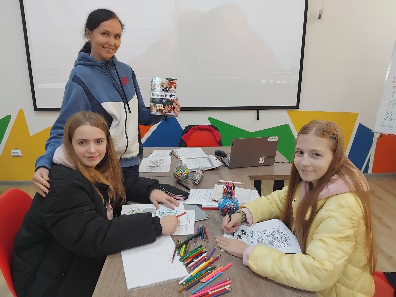 Читали і перекладали оповідання про opposites (протилежності) – “Day and Night” (“День і ніч”, автори Jackie Walter та Irene Montano). Виконували завдання за змістом — усно і письмово.
