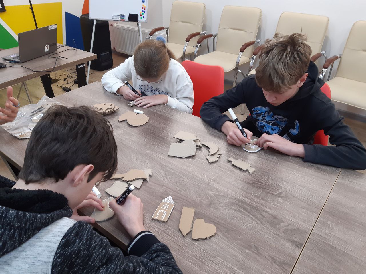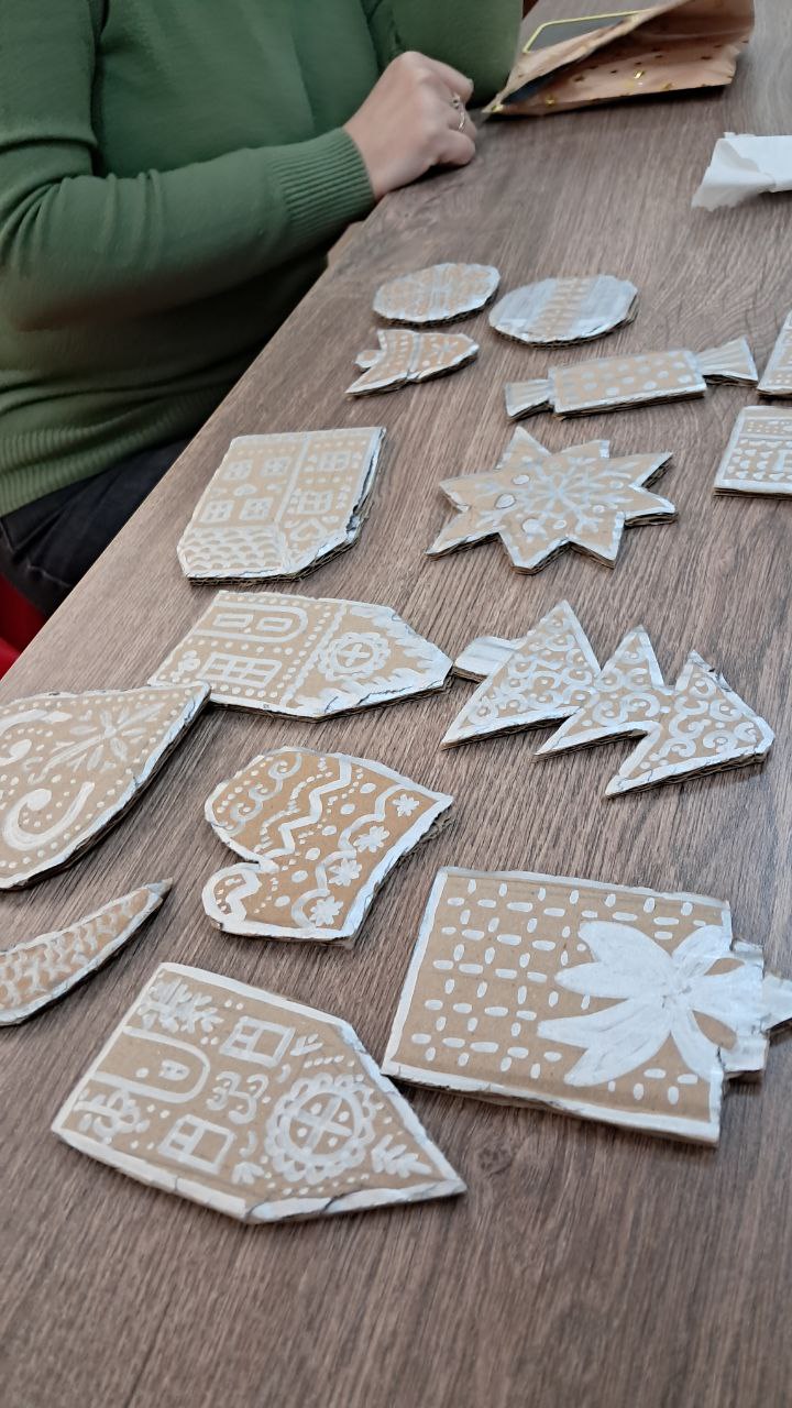 Сьогодні ж, у межах майстеркласу, любителі декоративного мистецтва розфарбовували імпровізовані «пряники», виготовлені з картону. Кожен учасник створював власний унікальний виріб, вкладаючи у нього фантазію, настрій і частинку душі. Після заняття ці прикраси вирушать додому, де будуть доповнені стрічками, блискітками чи іншими деталями та посядуть своє місце на різдвяній ялинці.