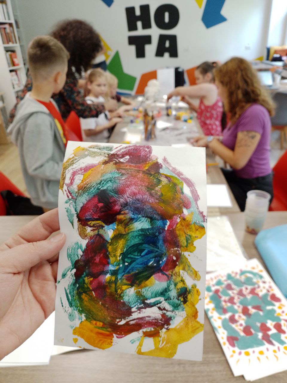 Монотипія – це особлива форма графіки, де кожна робота є єдиною в своєму роді, а сам процес створення зображення поєднує в собі елементи живопису, випадковості та експерименту за допомогою відбитку. Під час майстеркласу учасники дізналися про основи цієї техніки, вчилися працювати з кольорами, фактурою та імпровізувати у творчості.