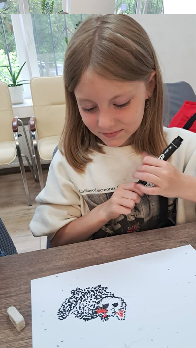 Діти разом з вихователями мали змогу спробувати нову для себе техніку в образотворчому мистецтві, яка розвиває дрібну моторику рук та сприяє ментальній релаксації, покращенню концентрації уваги та памʼяті