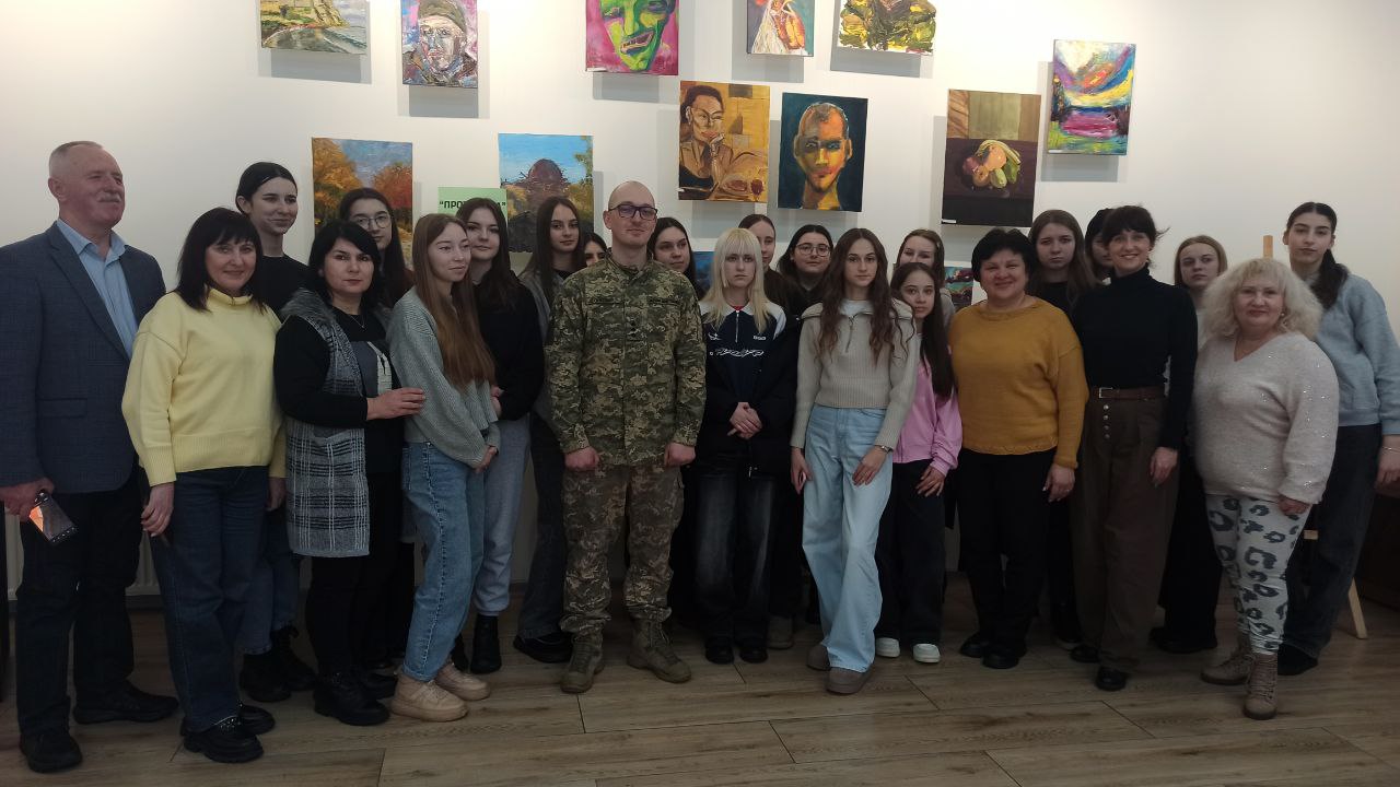 Розмова була відвертою і глибокою – про мистецтво під час війни, про силу внутрішньої стійкості, про те, що кожному потрібна своя «противага». Студенти активно ставили запитання, цікавилися технікою виконання робіт і тим, як поєднувати службу та творчість.
