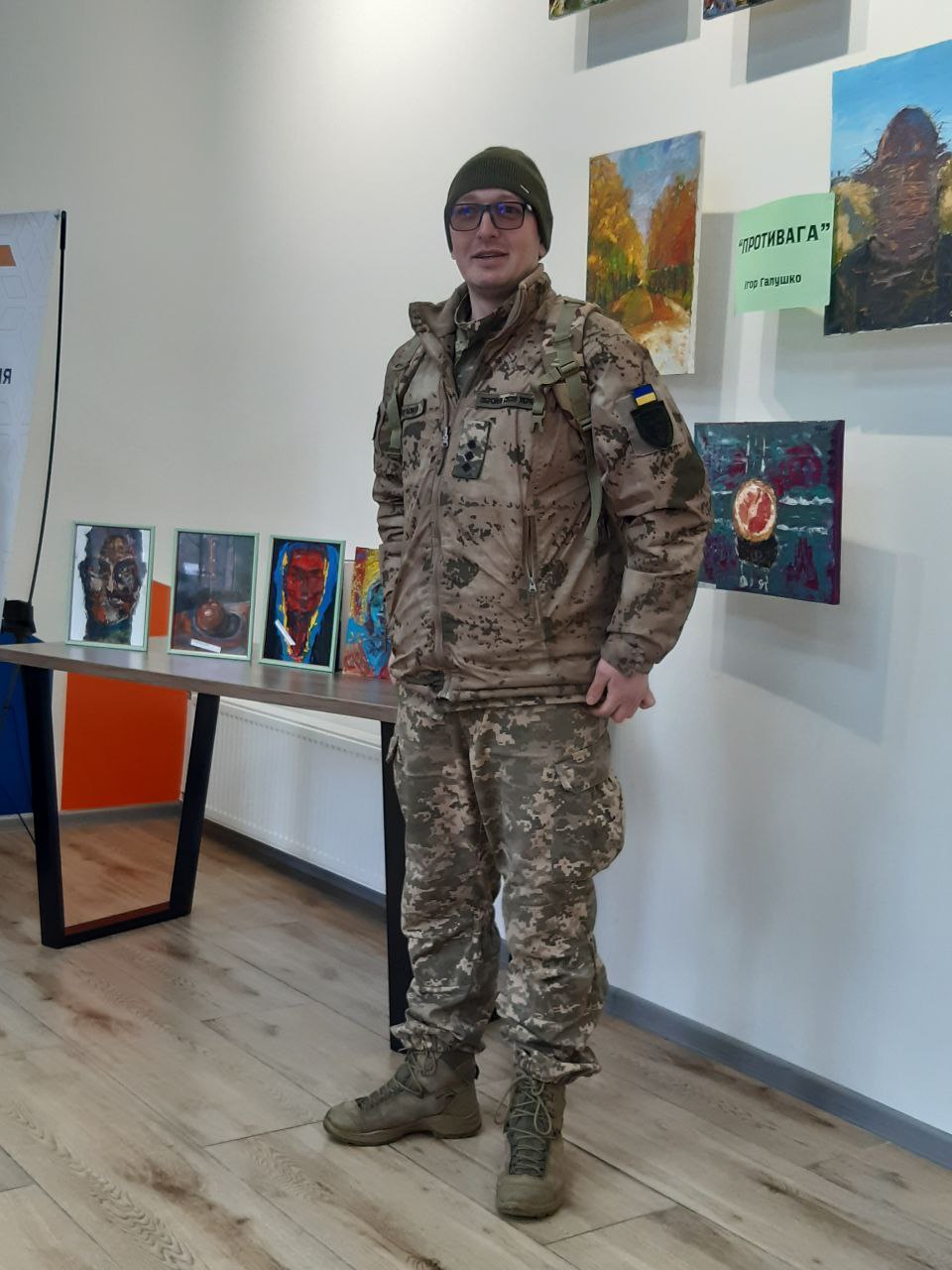 Пан Ігор розповів, що живопис став для нього способом зберегти внутрішню рівновагу. Пояснив, чому назвав виставку саме «Противага» – адже це про баланс між фронтом і мистецтвом, між напругою служби та потребою в тиші й самовираженні. Він поділився, як шукає власний стиль, працюючи олією та акрилом, експериментує з техніками, щоб знайти ту, яка найточніше передає його стан і досвід.