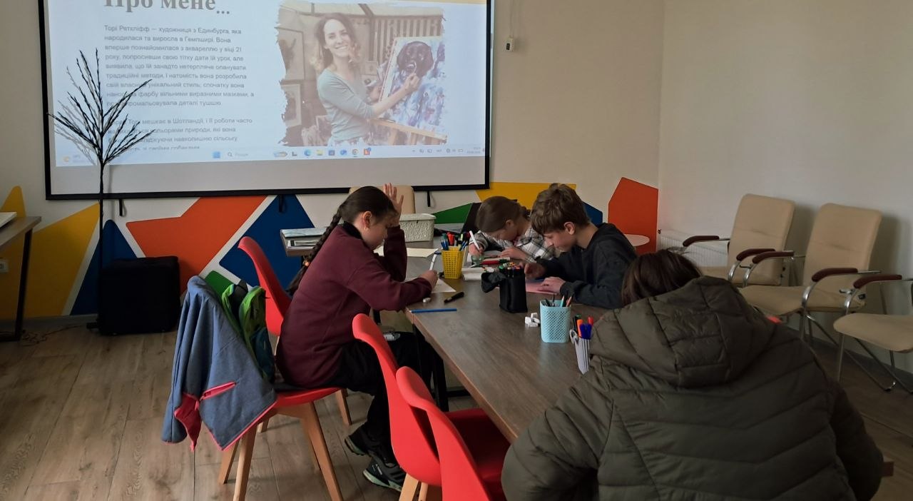 Її керівниця, рівненська крапкарка Олена Сєргєєва, познайомила учасників із творчістю самобутньої сучасної художниці зі Шотландії – Торі Редкліф. Мисткиня створює свої роботи за допомогою акварелі та графіки, найчастіше зображуючи тварин, а також активно підтримує благодійні фонди у різних куточках світу.
