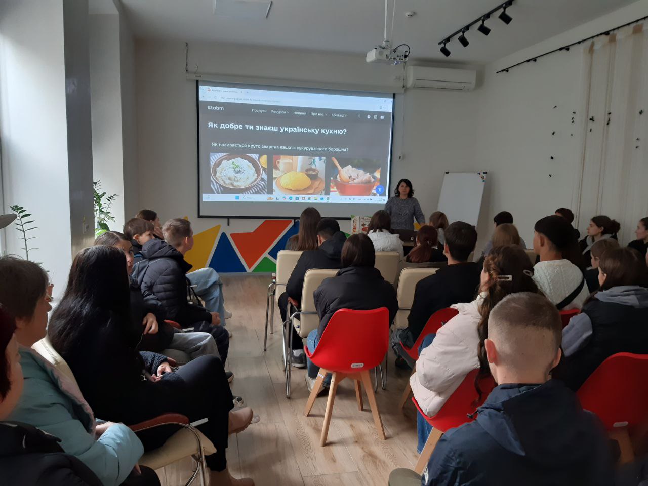 Запитання стосувалися не лише українських страв, а й світових гастрономічних традицій. Атмосфера була теплою й невимушеною, а під кінець один зі студентів, дивлячись на світлини апетитних страв, жартома вигукнув: «Хочу їсти!»
