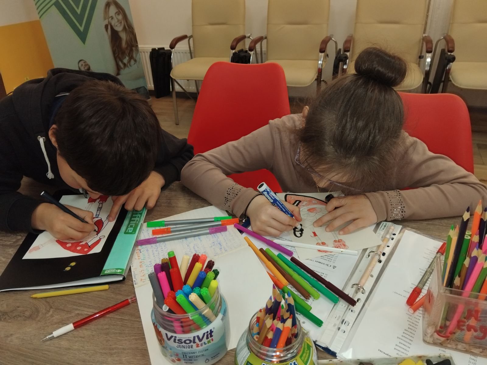 На білому картоні діти виготовляли 3D малюнки-аплікації яскравим пластиліном. Вийшло святково, дружньо та творчо!