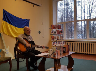 Молодь, культурні діячі краю та гості міста завітали на зустріч з відомим автором, поетом, музикантом, заслуженим діячем мистецтв України Сергієм Лазо. Ведуча події представила присутнім