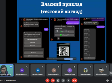 Рівненська обласна бібліотека для молоді провела обласний вебінар «Інтерактивна книгозбірня: інструменти та технології для проведення цікавих заходів». Незважаючи на вимкнення електроенергії, проблеми зі зв’язком працівники