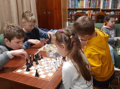 На черговому занятті “Школи інтелектуальних видів спорту”найменші учні продовжили вивчення гри в шахи, розв’язували задачі та грали тренувальні партії в шашки, переверталки тощо. А учні