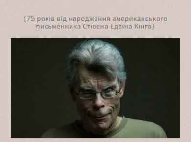 Цьогоріч відзначаємо 75-річчя відомого американського письменника, «короля жахів» Стівена Кінга (1947). Творчий доробок автора охоплює понад 200 творів, частка яких стали світовими бестселерами, а унікальні