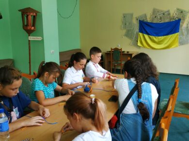 Молодь зібралася сьогодні у нашій книгозбірні, щоб разом виготовити патріотичний брелок в рамках «Summer entertainment». Майстерклас перервала повітряна тривога, але плетіння брелка продовжилося у бомбосховищі.