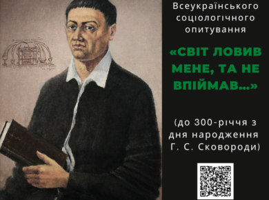 Запрошуємо молодь віком від 14-35 років до участі Всеукраїнського соціологічного опитування «Світ ловив мене, та не впіймав…» (до 300-річчя з дня народження Г. С. Сковороди).