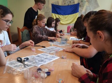 🧵 Молодіжна бібліотека провела для молодих батьків з дітьми та внутрішньо переміщених осіб майстерклас з плетіння браслетів у техніці макраме в рамках «Summer entertainment».🧵 Сьогодні