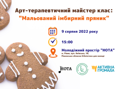 #ulibrv #події #анонс_ulibrv 🤗 Друзі, запрошуємо Вас на арт-терапевтичний майстерклас з розмальовування імбирних пряників спільно з молодіжним простором “НОТА” та ВІ “Активна Громада Рівного” !