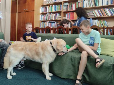 У молодіжний книгозбірні знову відбулася цікава зустріч… з собаками, адже нашіучасники читають разом з Донером та Кендіс. Участь у заході взяли і внутрішньопереміщені особи. Тварини