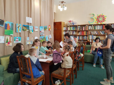 У молодіжній бібліотеці знову зібралися учасники цікавого волонтерськогопроєкту письменниці, психологині, адвокатки, мами шести дітей Іванни Голуб –«Арт-терапевтичні заняття з дітьми та їх батьками», що діє