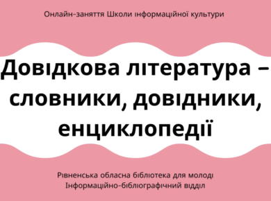 Довідкова література – словники, довідники, енциклопедії у рамках Школи інформаційної культури
