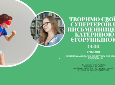 Запрошуємо на зустріч “Творимо своїх супергероїв із письменницею Катериною Єгорушкіною”