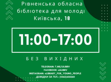 Діти та молодь з числа внутрішньо переміщених осіб з зони бойових дій мають можливість безкоштовно зареєструватися у Рівненській обласній бібліотеці для молоді. м. Рівне, вул.