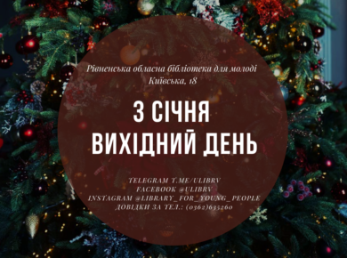 Дорогі користувачі! Повідомляємо про деякі невеликі зміни у графіку роботи найближчим часом. 03.01 – вихідний день.