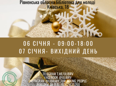 Дорогі користувачі! Повідомляємо про зміни у графіку роботи найближчим часом. 06 січня – 09:00-18:00 07 січня – вихідний день