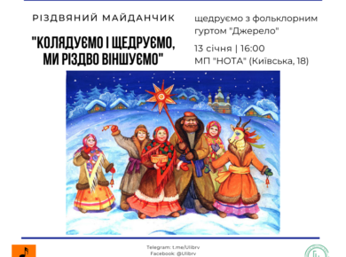 13 січня о 16:00 запрошуємо до різдвяного майданчику – щедруємо з фольклорним гуртом “Джерело”. Де: Молодіжний простір “НОТА” (Київська,18) Реєстрація: https://docs.google.com/forms/d/1meTZXpzbxfaZzI5m87OnGNWxo0FdpNo8Zi_BPkfgF9Q/viewform?edit_requested=true