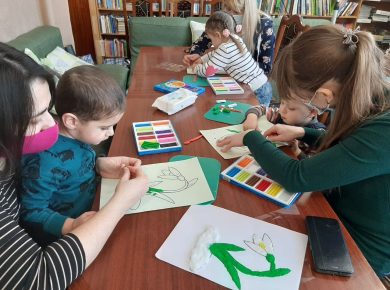 У Рівненській обласній бібліотеці для молоді відбулася чергова зустріч школи раннього розвитку «Мамине сонечко». Під час заняття діти разом із батьками створювали аплікацію з пластиліну
