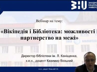 Дякуємо Українській бібліотечній асоціації за корисний та цікавий вебінар “Вікіпедія і Бібліотека: можливості і партнерство на межі” Презентацію проводив пан Казимир Возьний, кандидат економічних наук,