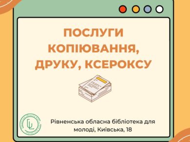 Послуги копіювання, друку, ксероксу у молодіжній бібліотеці
